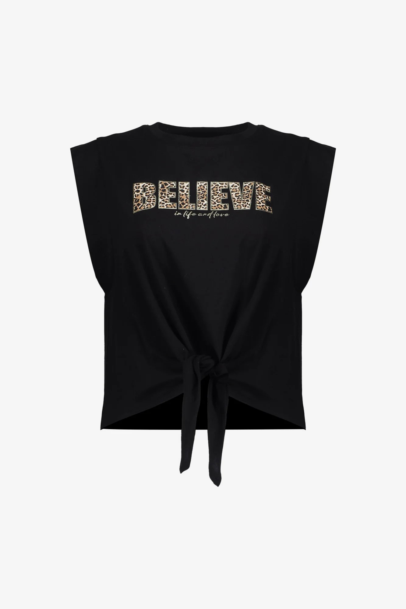 • Imprimé : Imprimé poitrine « Believe me » à imprimé léopard