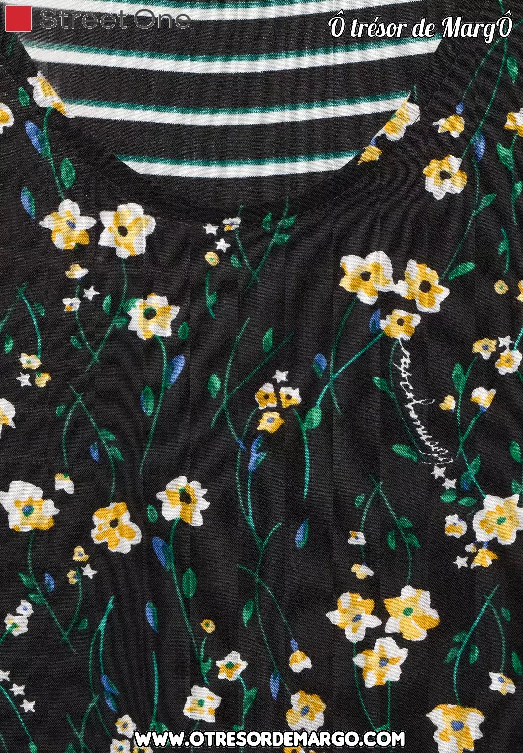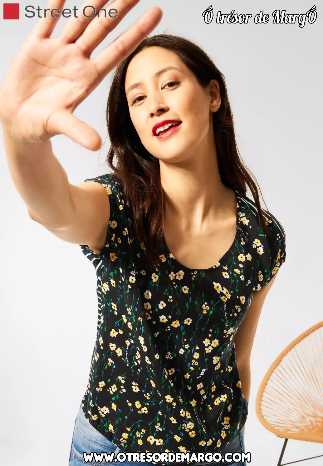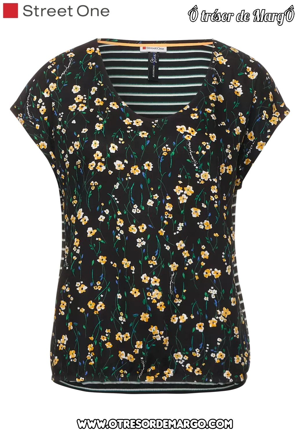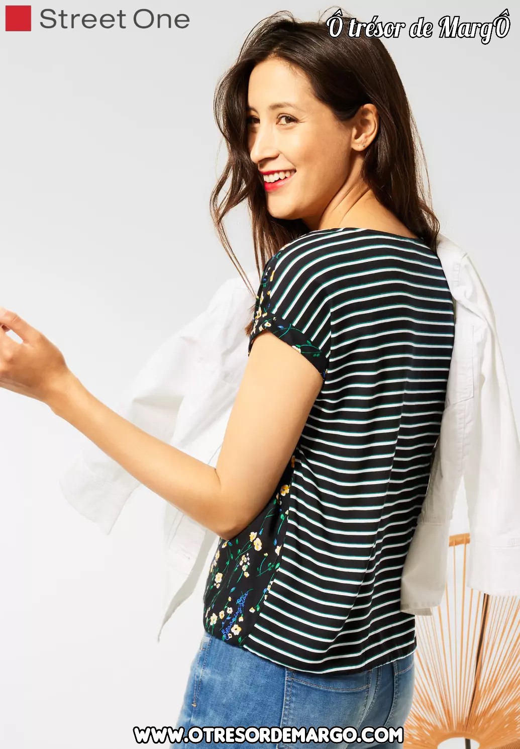 "En avant le mélange ! Un chemisier cool de style Laurentia de Street One qui séduit avec son look décontracté avec des épaules larges. Avec un col rond, il séduit avant tout grâce à son mélange d'imprimés. Le motif délicat à l'avant se prolonge à l'arrière par des rayures plutôt sportives. La viscose souple est cosy au toucher."