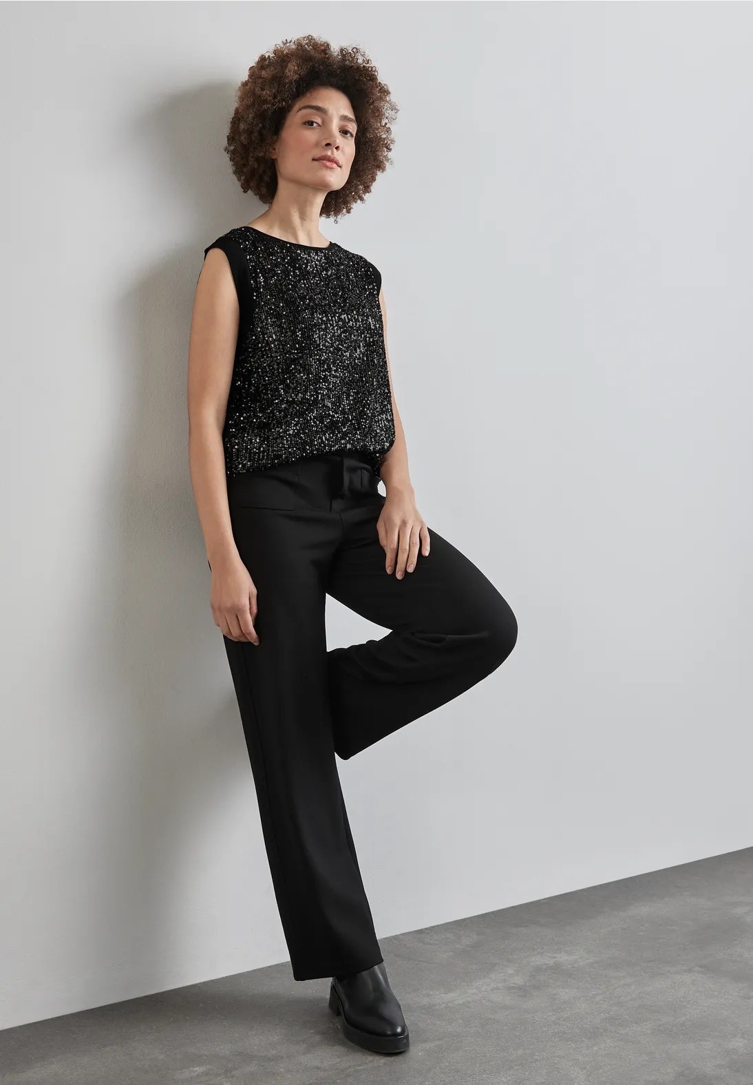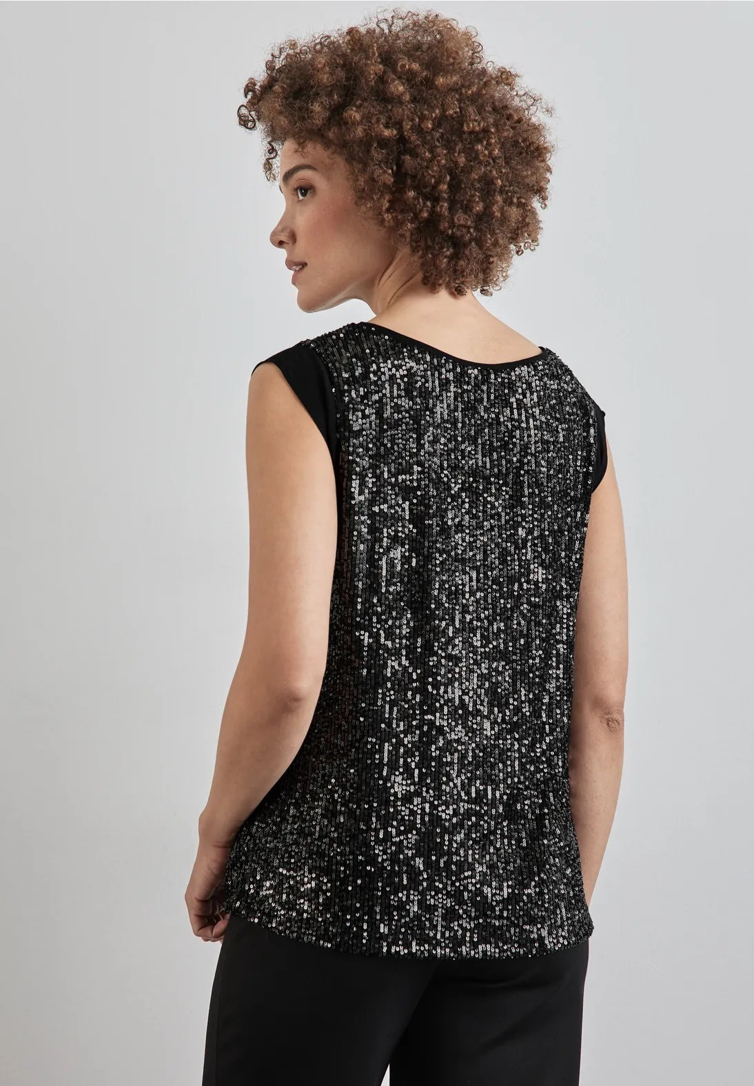 Ce top chemisier de Street One pour femmes associe des paillettes scintillantes à de délicates bretelles en mousseline et à un élégant tour de cou. Le mélange de matières avec une part de stretch le rend particulièrement confortable et glamour.